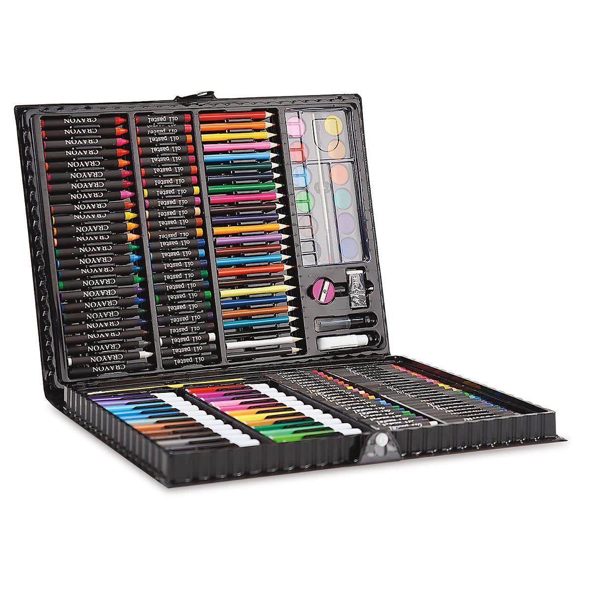- COMPLETE SET: Filled to the brim with everything they need to create! Includes: crayons, colored pencils, markers, oil pastels and watercolor paints, as well as a variety of tools.