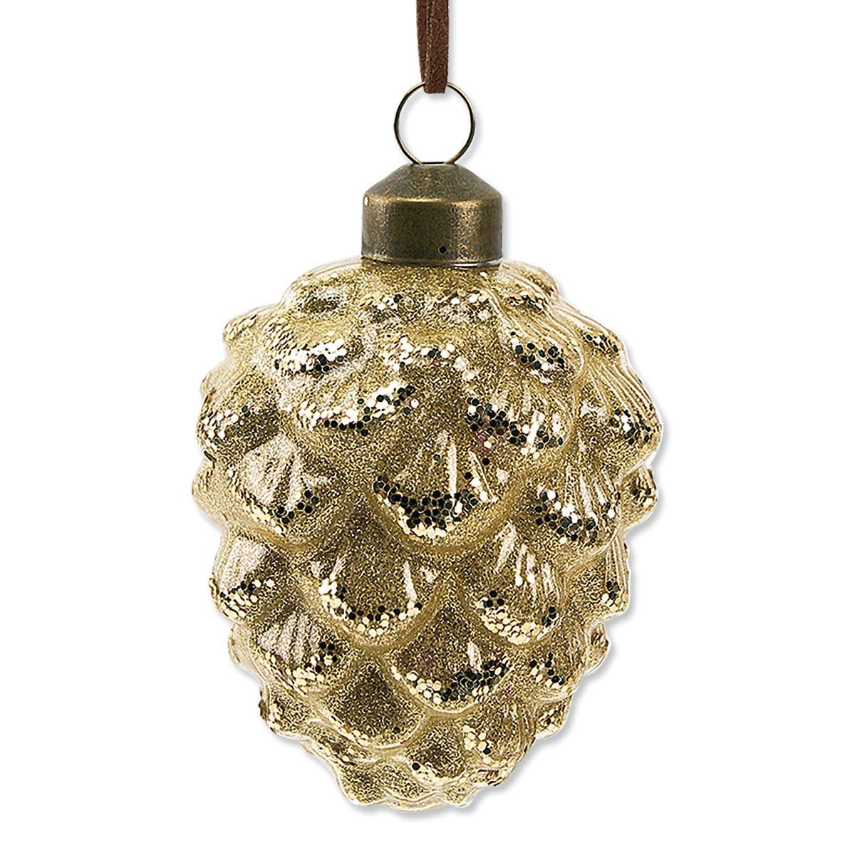Lillian Vernon Glass Pinecone Ornaments with Leather String - Set of 3, Hanging String, 3" Diameter, Holiday Tree Décor, Gifts