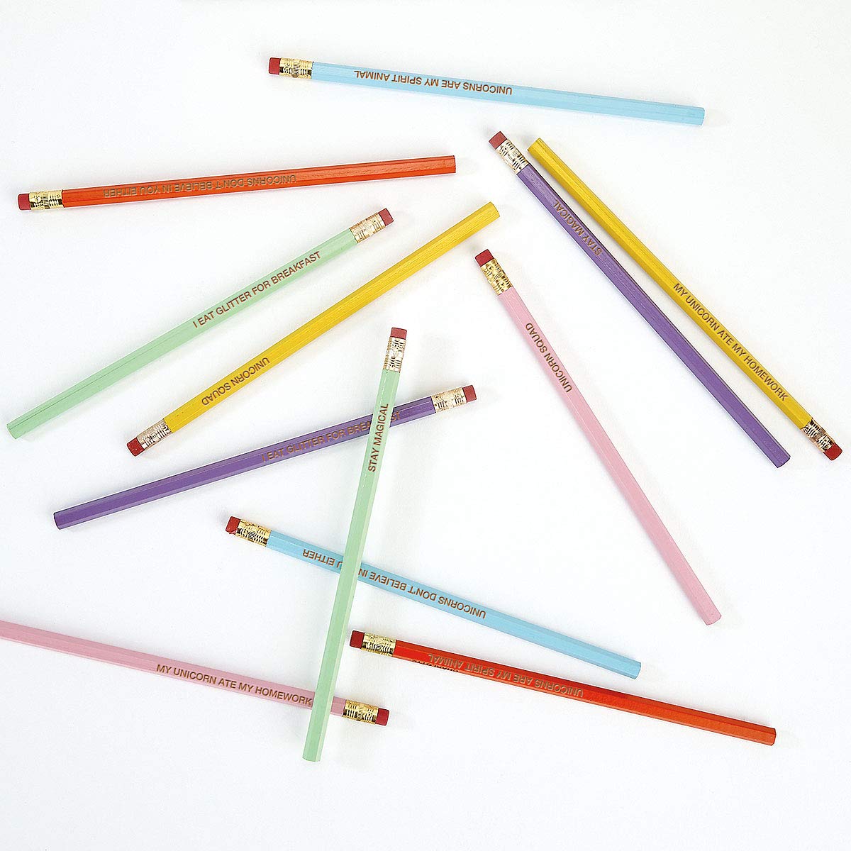 Lillian Vernon Laser Engraved Unicorn Sayings Pencils - Set of 12, Preprinted Sayings, Hardwood #2 School Pencils, Kid's Gift